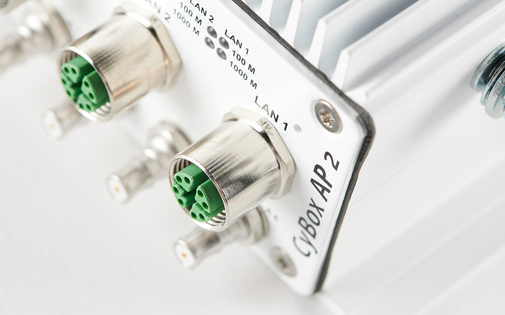 On the fixed network side, the access point features two Gigabit Ethernet ports which are, as an option, internally connected to an unmanaged switch and can be used either for redundancy to increase the availability of services, or to connect a second CyBox AP 2-W. The bypass relay option ensures a high-speed connection even if the access point is powered down.