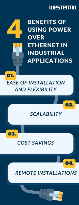In an industrial application, PoE has many benefits, including: