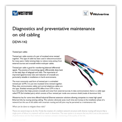 Die Wiederverwendung von alten Kabeln für neue Netzwerklösungen ermöglicht Firmen erhebliche Kosteneinsparungen. Es gibt viele Wege sicherzustellen, dass Ihr Netzwerk immer maximaler Kapazität betrieben wird. Downloaden Sie das White Paper über Diagnostik und vorbeugende Instandhaltung von alter Verkabelung um mehr zu lernen.