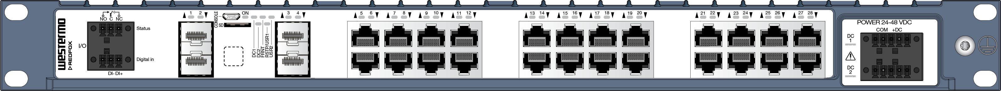 19” Rackmount Managed Ethernet Switch - low voltage version, layer 224 to 48 VDC24 x 10/100/1000 Mbit/s, Ethernet TX, RJ-454 x 100/1000 Mbit/s SFP transceivers supported, Ethernet FX (LC)