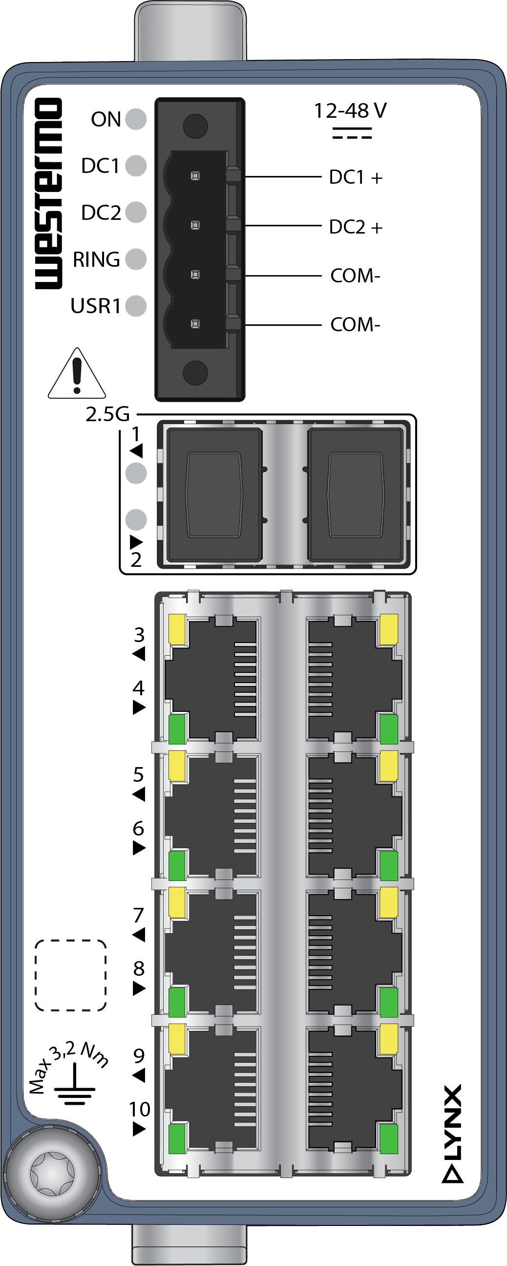 Industrial Layer 2 Gigabit Switch8 x RJ-45, 10/100/1000BaseT(X)2 x 2.5 Gbit/s, SFP12 to 48 VDC-40 to +70°C