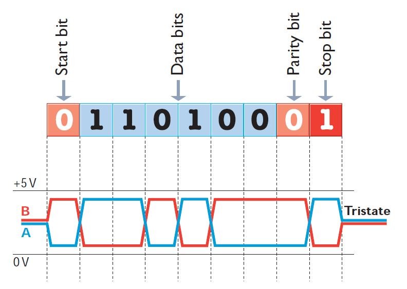 The two standards, although separate, were very similar with most equipment supporting both hence you would often see it written RS-422/485. The fundamentals of both standards were that data is encoded differentially between two wires instead of in reference to a signal ground as with RS-232. This method of data communications allowed data to be transmitted reliably up to distances as far as 1.2km and as well as this the transmit circuit could drive many receivers making a multi-drop network a possibility. The most significant difference between RS-422 and RS-485 was that with RS-485 only a single pair of cables was needed for a multi-drop network.