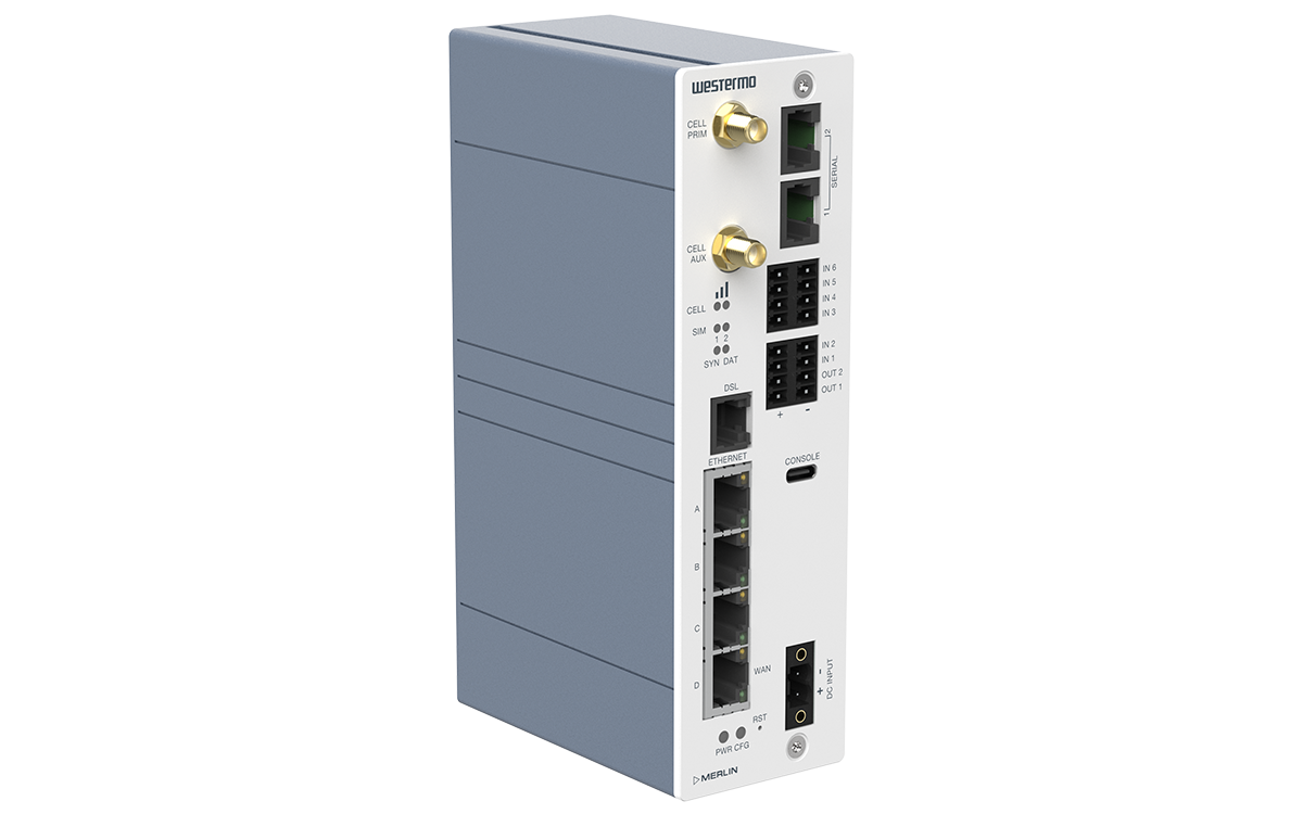 Industrial VDSL LTE Cellular RouterLTE Cat-4Trusted Platform Module1 x VDSL2/ADSL2+ Annex A, Annex B, RJ-114 x GbE RJ-45 6 x Digital input2 x Relay contact output2 x Mini SIM card slot2 x Serial port configurable as RS-232 or RS-485, RJ-45