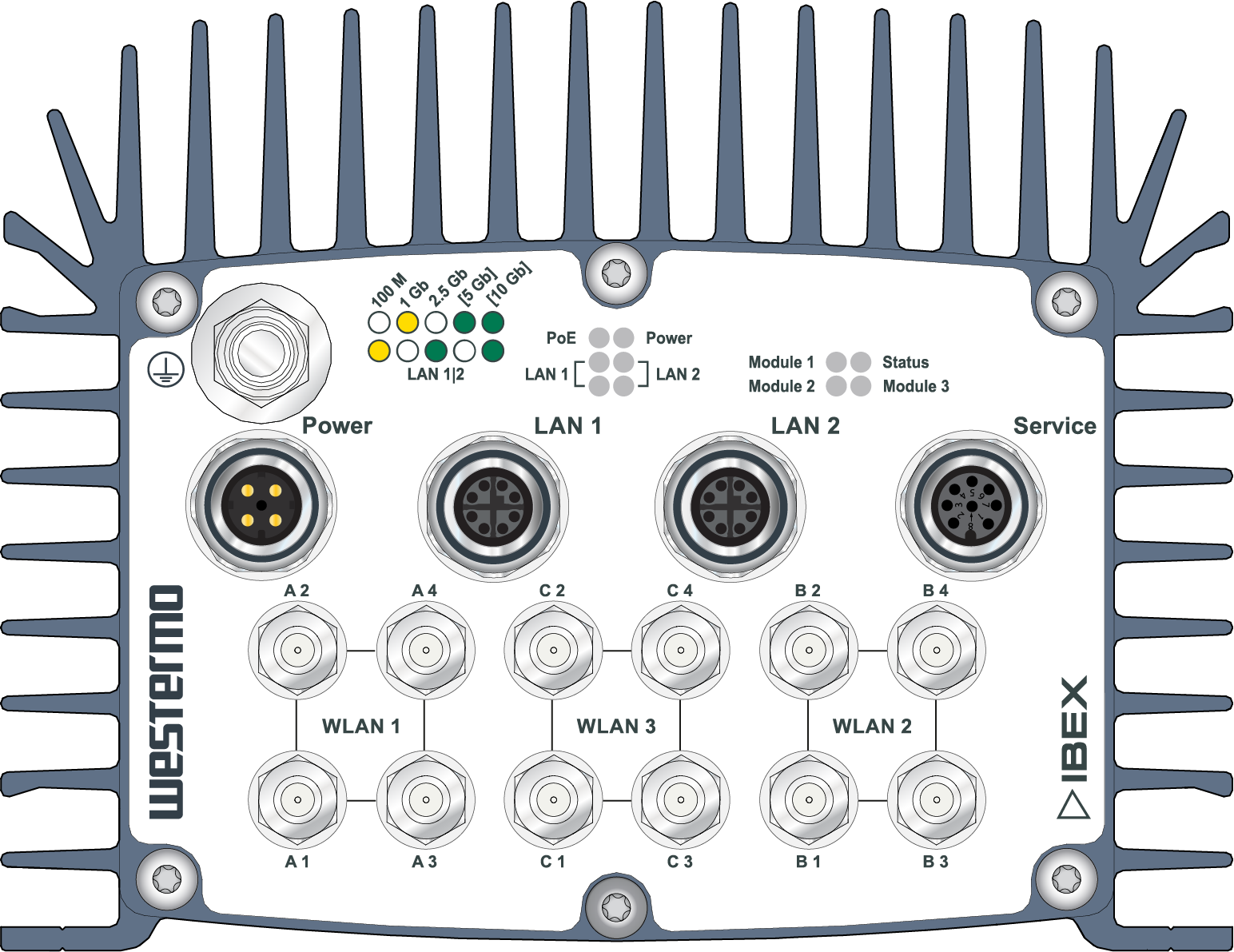 2 x 2.5/10 Gigabit Ethernet ports, M12 connectors
