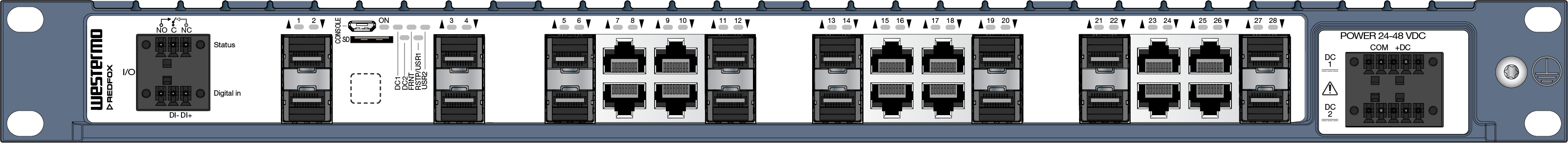 19” Rackmount Managed Ethernet Switch - low voltage version, layer 324 to 48 VDC12 x 10/100/1000 Mbit/s, Ethernet TX, RJ-4516 x 100/1000 Mbit/s SFP transceivers supported, Ethernet FX (LC)