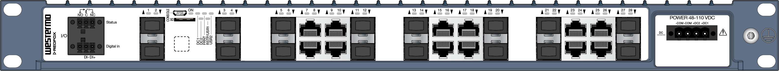 19” Rackmount Managed Ethernet Switch - medium voltage version, layer 248 to 110 VDC12 x 10/100/1000 Mbit/s, Ethernet TX, RJ-4516 x 100/1000 Mbit/s SFP transceivers supported, Ethernet FX (LC)