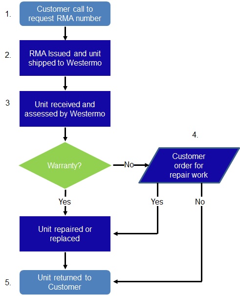 On receipt Westermo will assess the returned item within 3 working days. Units returned outside of their warranty period will be subject to an inspection fee.